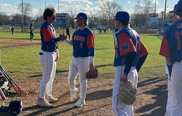 Jack Holladay provided Woodstown some insurance with a two-run shot in the sixth. It was his first career home run on “the big field” and helped him avoid an oh-for on Opening Day. Teammates standing around his post-game interview roared with approval when the first baseman was reminded he has a similar sounding name as the MLB’s top prospect, Baltimore’s Jackson Holliday.