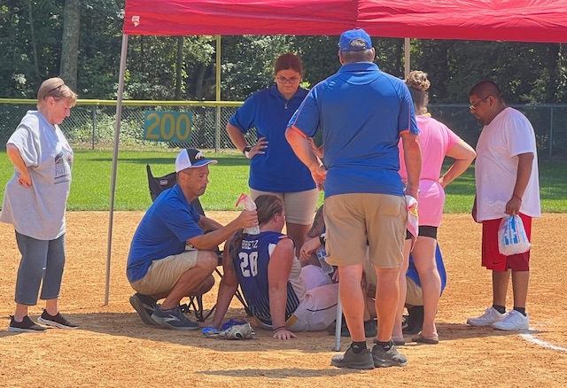 Pennsville looked ready to bounce back from their opening round loss and took a 1-0 lead in the first on Jess Bretz’ second homer of the day. But their fortunes turned dramatically in the second inning when Bretz was overcome by the heat and collapsed in the circle. Temperatures were in the 90s throughout the game with heat index hovering around 100.