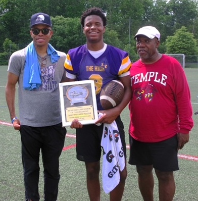 QB Ahmad Jones (center) was named MVP after leading Camden (top photo) to Ginsburg 7v7 Classic title Saturday.