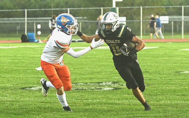 PITTSGROVE – When the fourth down pass fell incomplete in the end zone, Schalick’s players poured off the bench in celebration like they had just won the Super Bowl.