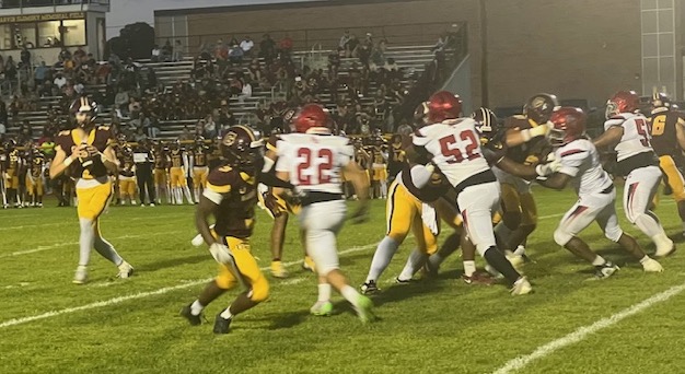 The Bulldogs came at them in waves. The Red Devils’ two best plays were a 14-yard run by Terrell Thomas in the first quarter and a 28-yard burst by Jameel Horace in the second for their only two first downs, but they didn’t get much beyond that.
