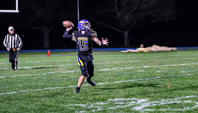 The night didn’t start off well for them. Pennsville, hosting its first playoff game since 2016, put together two time-consuming 80-play drives to take a 16-7 halftime lead.