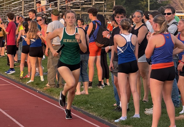 In one of the more anticipated races of the day, Schalick’s David Stewart beat Woodstown’s Josh Crawford by four-tenths of a second to win the 400. Stewart also won the 100 and long jump. Crawford came back and won his specialty, the 800. Jacob Marino, another of the Four Horsemen, won the 1600 and 3200.